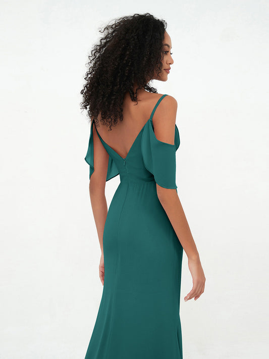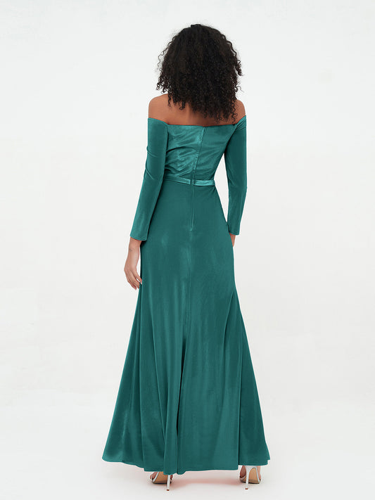 Babaroni BridgetVestidos largos de terciopelo con hombros descubiertos y mangas largas Pavo real
