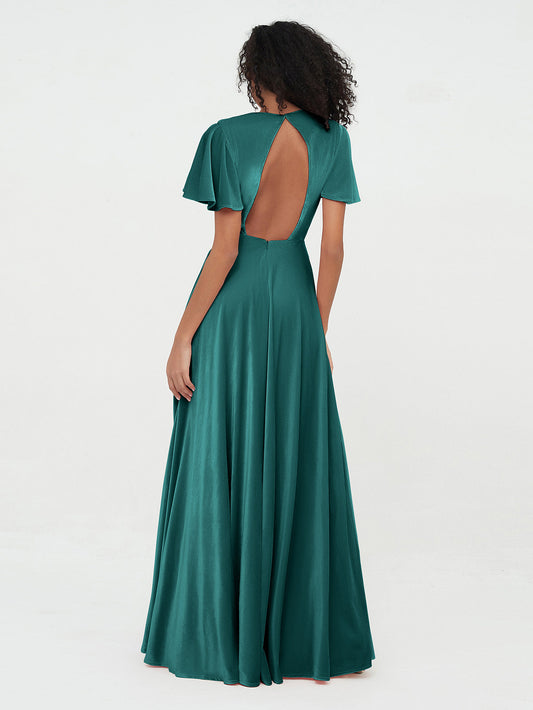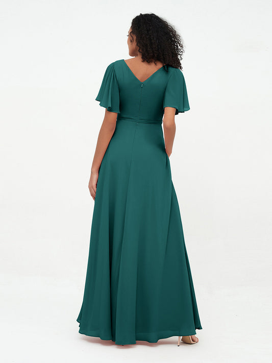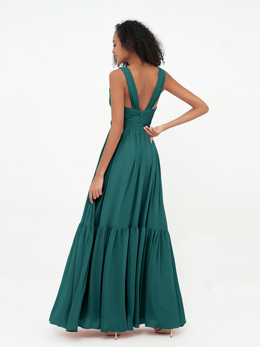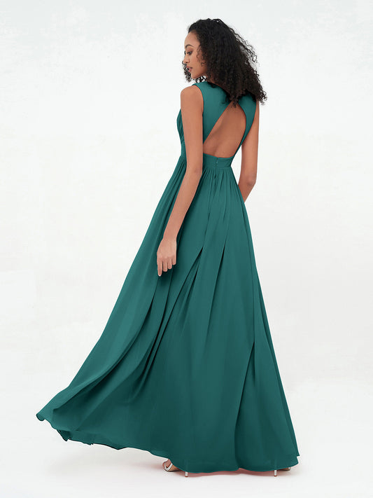 Babaroni DanaVestidos largos de chiffon con escote en V y espalda abierta Pavo real
