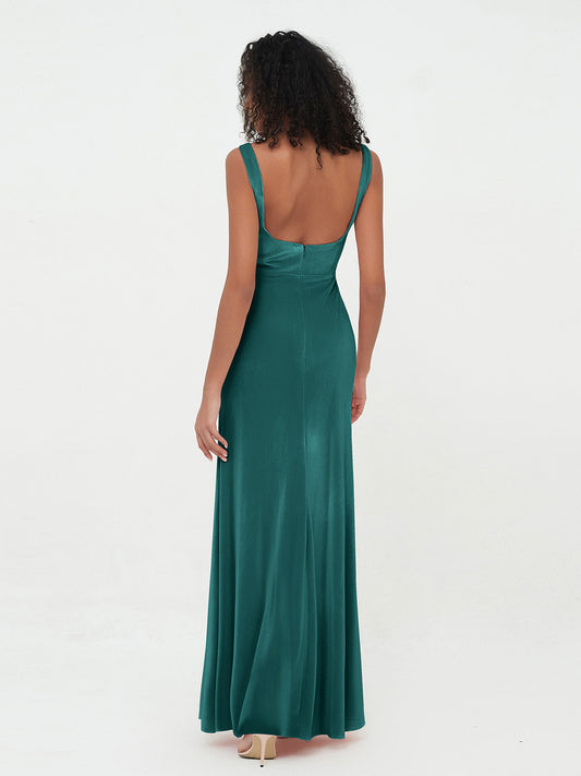 Babaroni YettaVestidos de columnas con tirantes spaghetti y abertura Pavo real