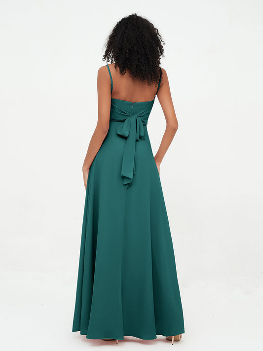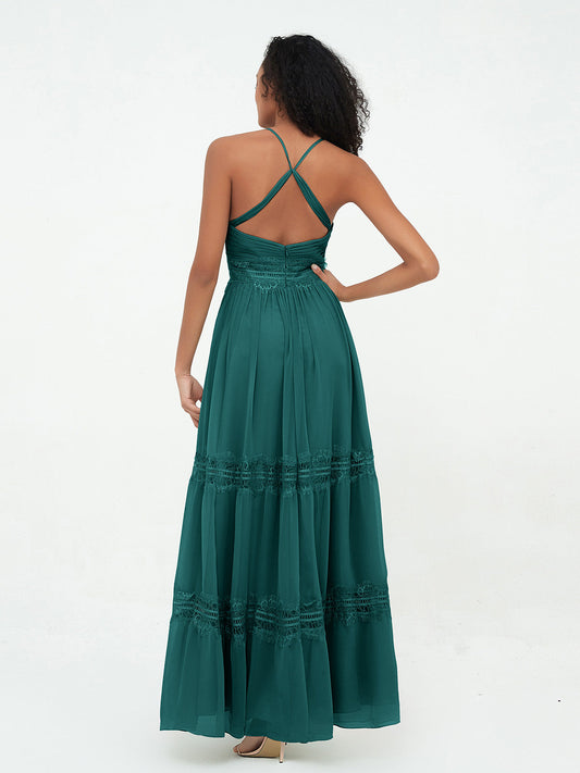 Babaroni AmyVestidos largos de dama de honor de chiffon con tirantes de cuello halter Pavo real