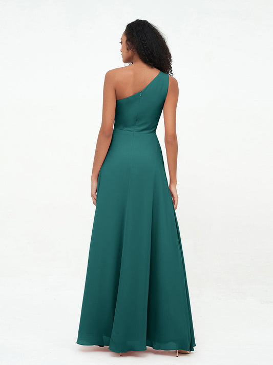 Babaroni XantheVestidos máximos de chiffon de un solo hombro con abertura Pavo real