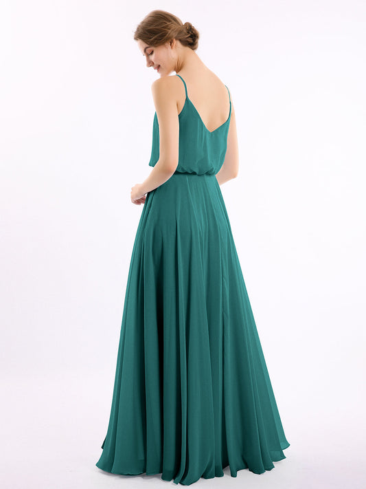Babaroni VickyVestidos de dama de honor de chiffon con escote en V y tirantes finos Pavo real