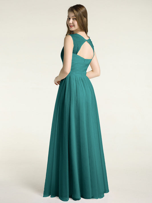 Babaroni JudyVestidos de chiffon con escote en V y tirantes decorados con cuentas Pavo real