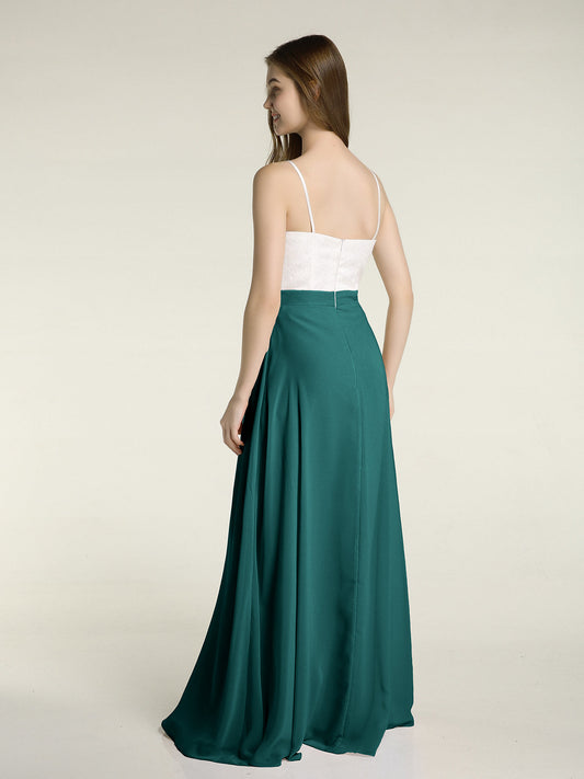 Babaroni CherryVestidos largos de encaje y chiffon con tirantes finos Pavo real
