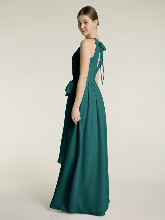 Babaroni JaneVestidos largos de chiffon estilo halter con lazo Pavo real
