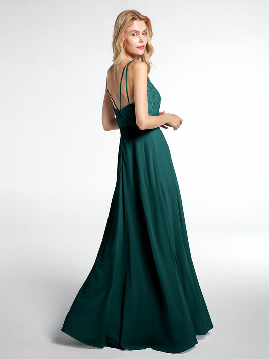 Babaroni LaraineVestido maxi con cuerpo de encaje y falda de chiffon con escote en V Pavo real