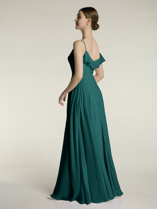 Babaroni JuliaVestidos largos de chiffon con tirantes finos y escote en V Pavo real