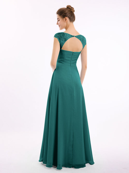 Babaroni MarleyVestidos de dama de honor de chiffon con mangas cap de encaje Pavo real