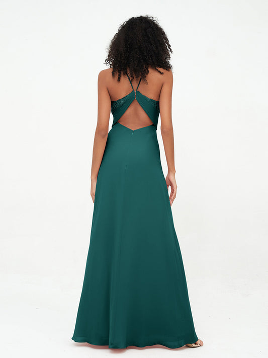 Babaroni FrancesVestidos de halter con top de encaje y espalda descubierta de gasa Pavo real