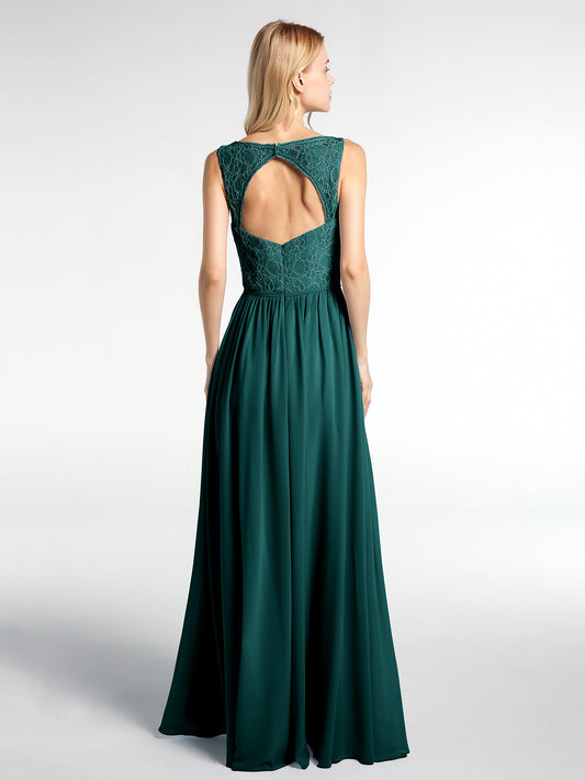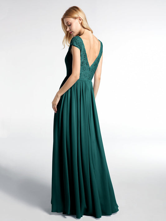 Babaroni LaraineVestido maxi con cuerpo de encaje y falda de chiffon con escote en V Pavo real