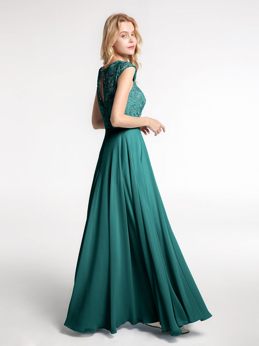 Babaroni HilaryVestido maxi de chiffon con escote en V y parte superior de encaje Pavo real