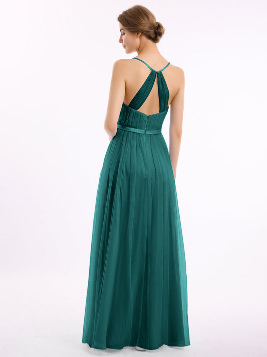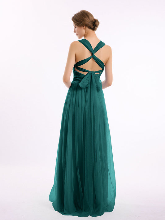 Babaroni EvelynVestidos de tul con espalda convertible y largo hasta el suelo Pavo real