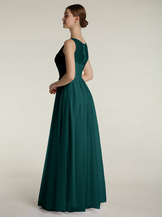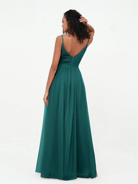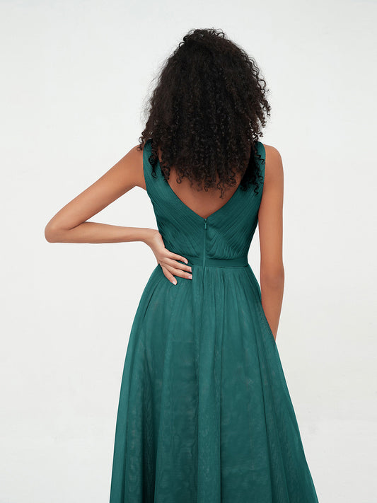 Babaroni KatherineVestidos máximos de tul estilo A-line con escote en V profundo en la espalda Pavo real