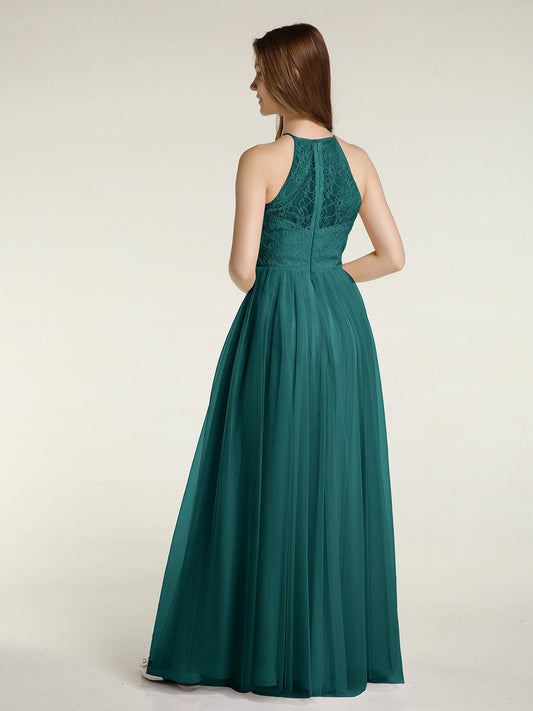 Babaroni TinaVestidos largos con cuerpo de encaje y falda de tul Pavo real