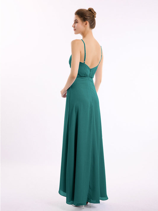 Babaroni OliveVestidos de chiffon con tirantes finos y largo asimétrico con lazo Pavo real