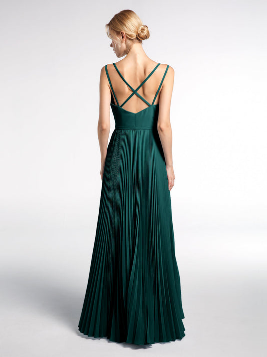 Babaroni VeraVestidos largos de tul cruzado plisado con tirantes decorados con cuentas Pavo real