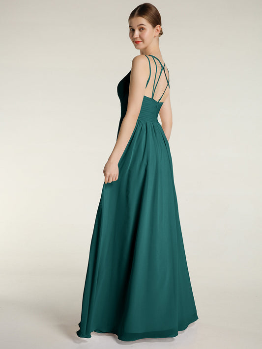 Babaroni CoraVestido largo de dama de honor de chiffon con tirantes dobles Pavo real