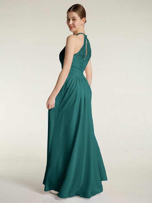 Babaroni AmandaVestidos largos de chiffon y encaje estilo halter Pavo real