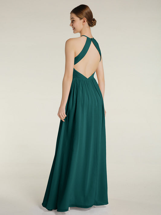 Babaroni TheraVestidos largos de dama de honor estilo halter de chiffon con espalda baja Pavo real