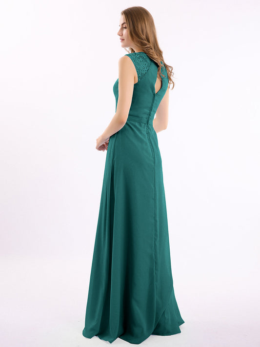 Babaroni LucilleVestidos largos de chiffon con encaje en escote en V profundo y espalda descubierta Pavo real