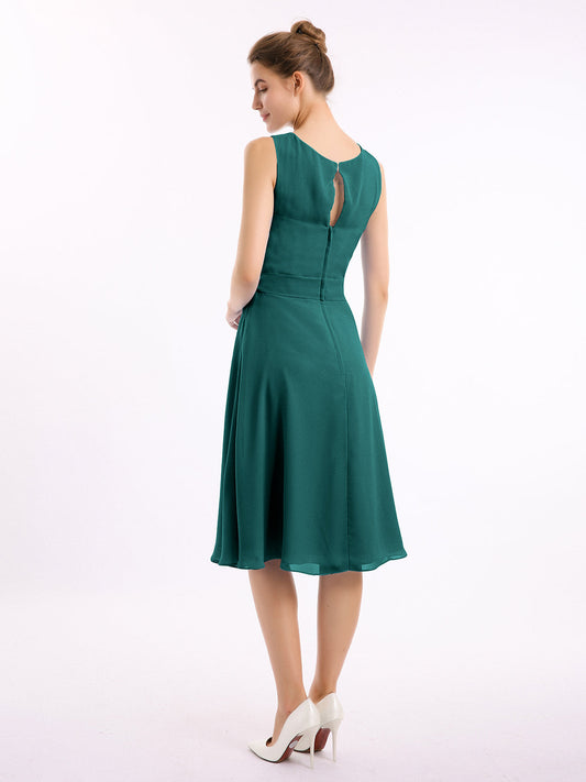 Babaroni IsobelVestido corto de chiffon con cuello tipo scoop y lazo de cinturón Pavo real
