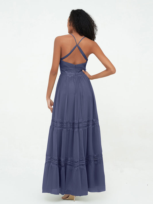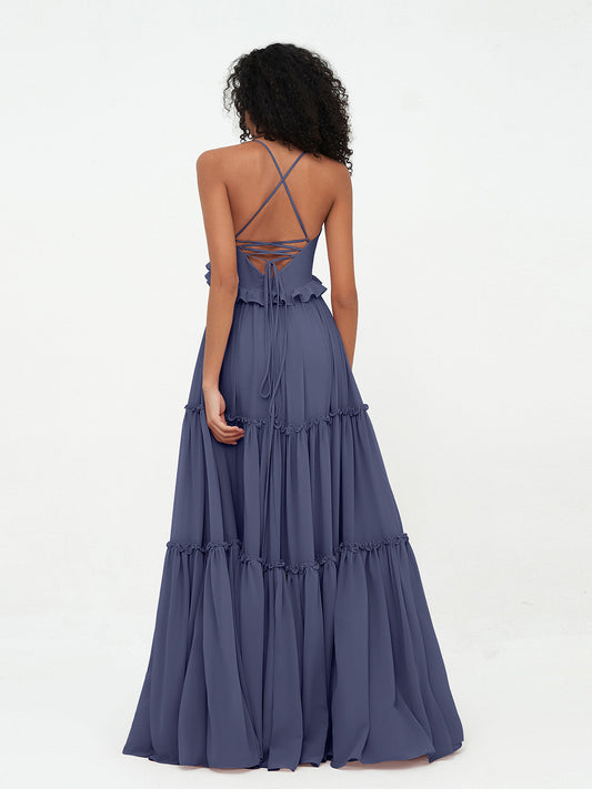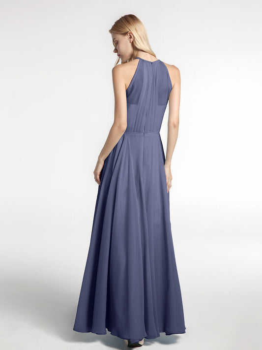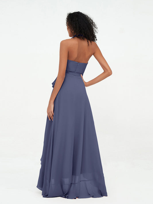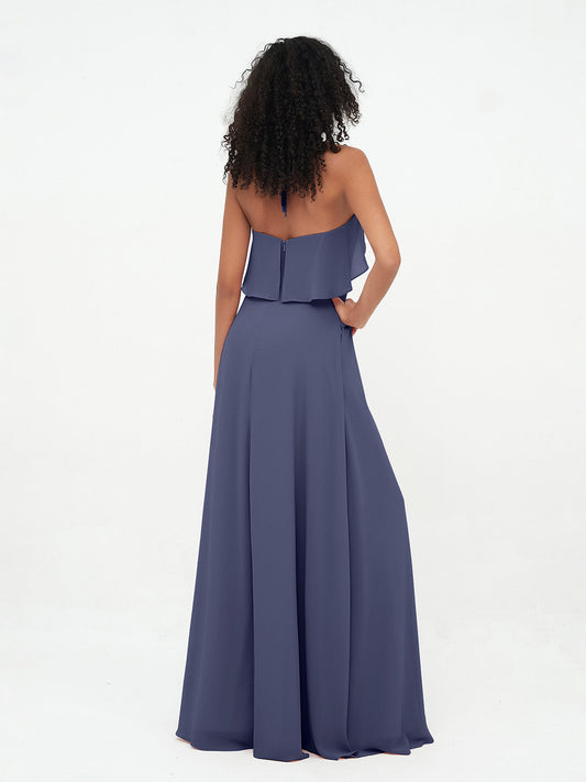 Babaroni AmyVestidos largos de dama de honor de chiffon con tirantes de cuello halter Tormenta