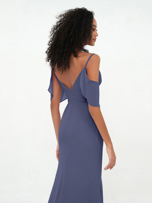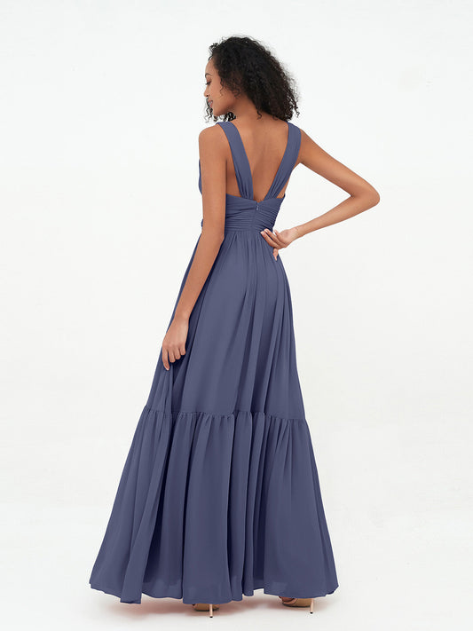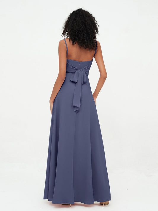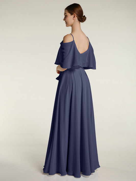 Babaroni CoraVestido largo de dama de honor de chiffon con tirantes dobles Tormenta