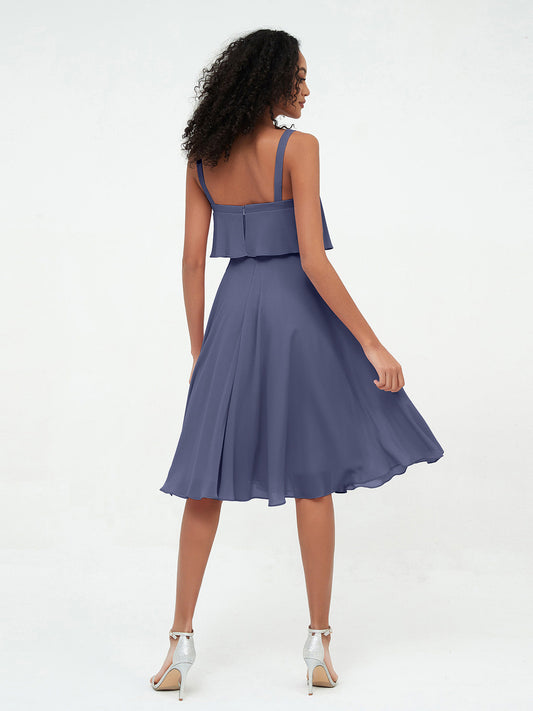 Babaroni AnnaVestidos cortos de chiffon con tirantes para la dama de honor con falda redonda Tormenta