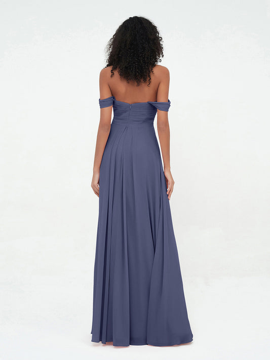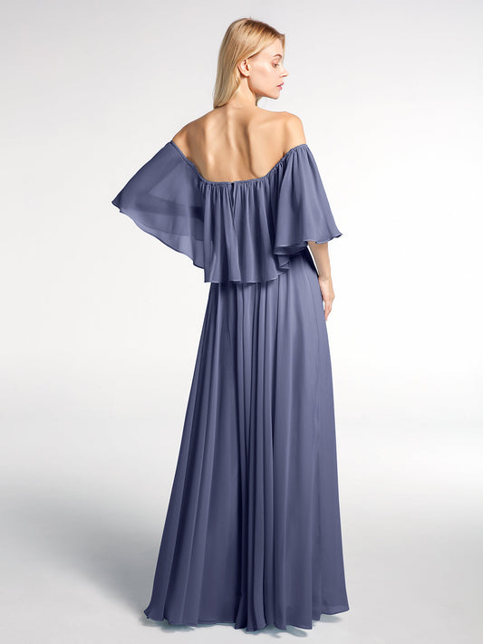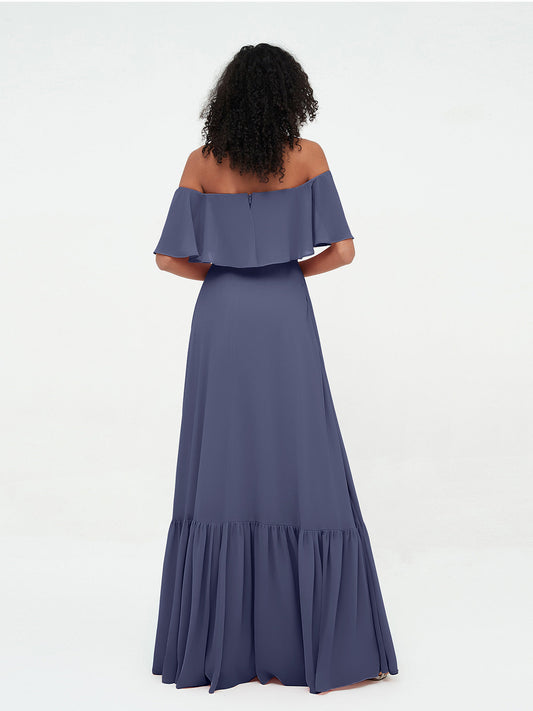 Babaroni VirginiaVestidos máximos de chiffon con falda escalonada estilo off shoulder Tormenta