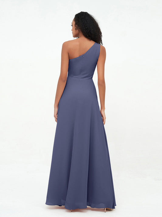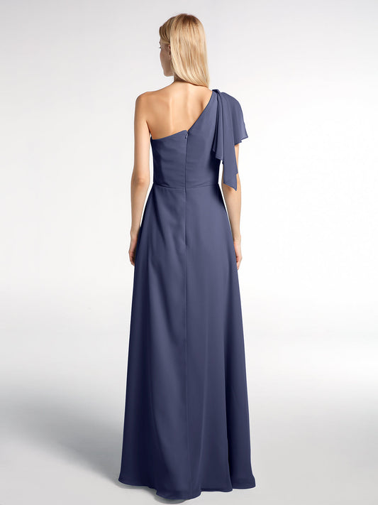 Babaroni XantheVestidos máximos de chiffon de un solo hombro con abertura Tormenta