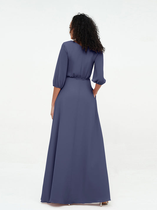 Babaroni UnaVestidos máximos de chiffon con escote en V profundo y mangas 1/2 Tormenta