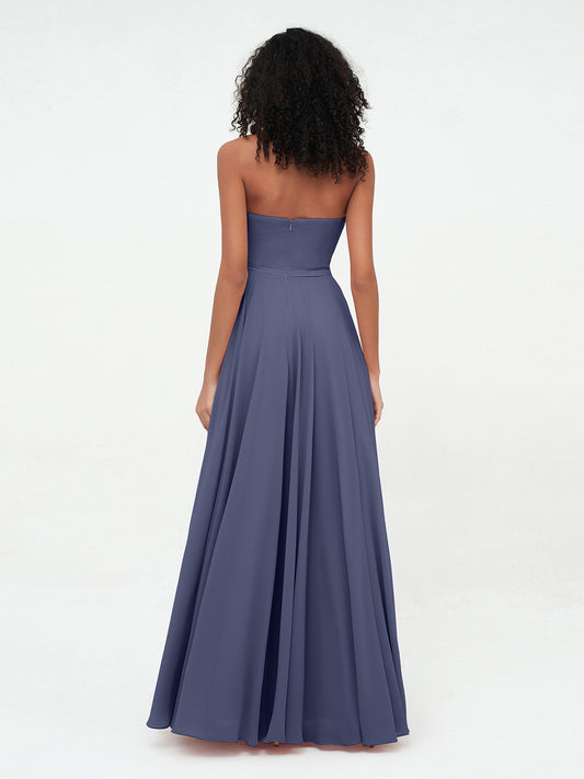 Babaroni YvonneVestidos largos de chiffon sin tirantes y escote corazón Tormenta
