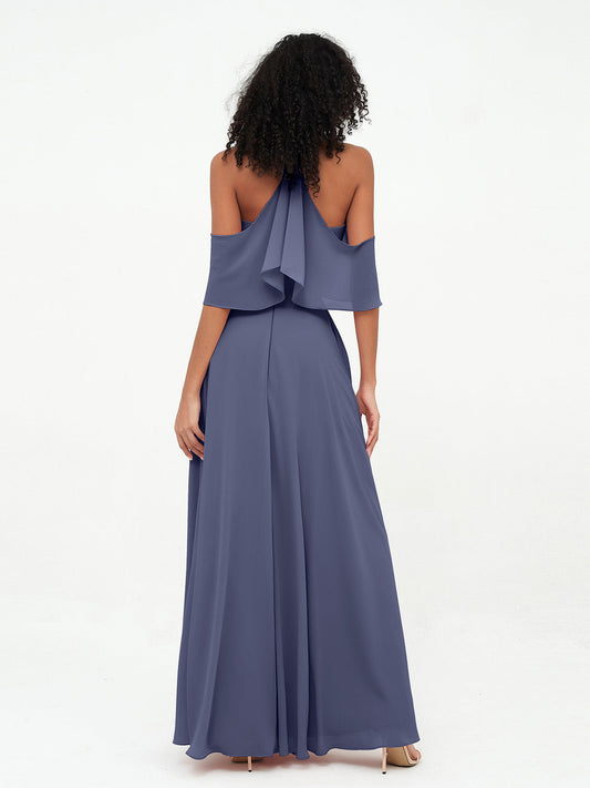 Babaroni IvyVestidos máximos de chiffon estilo halter con hombros descubiertos Tormenta