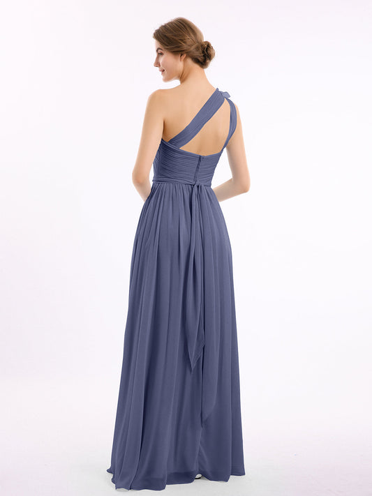 Babaroni XantheVestidos máximos de chiffon de un solo hombro con abertura Tormenta