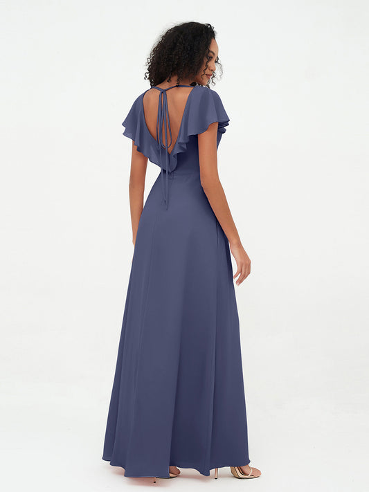 Babaroni PagVestidos estilo A-line de chiffon con escote en V y abertura Tormenta