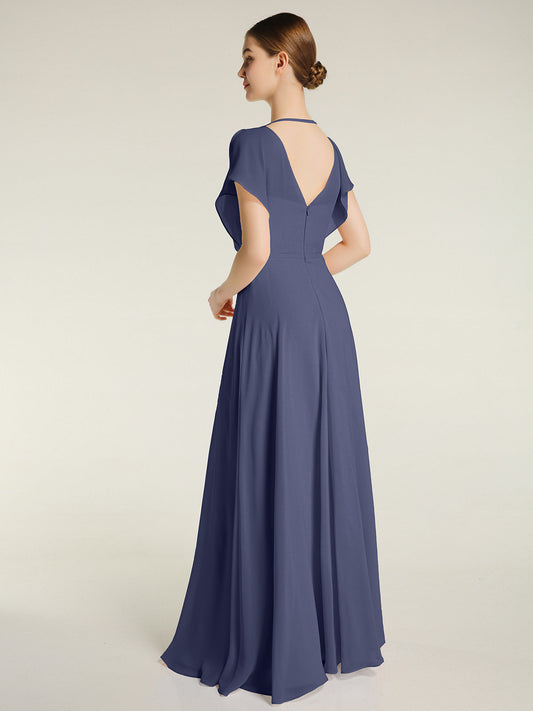Babaroni VenusVestidos asimétricos de chiffon con cuello halter y escote en V profundo Tormenta