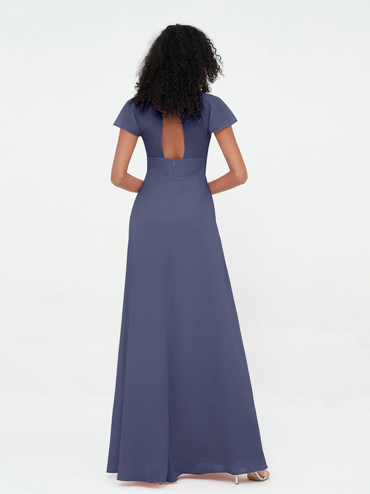 Babaroni SibylVestido largo de chiffon sencillo con escote en forma de muesca Tormenta