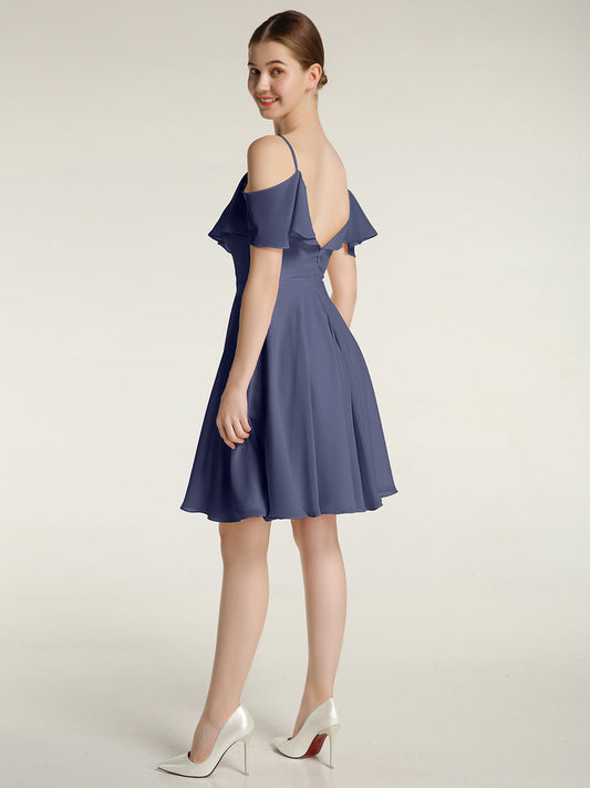 Babaroni SelenaVestidos cortos de chiffon con escote tipo scoop y mangas de volantes Tormenta