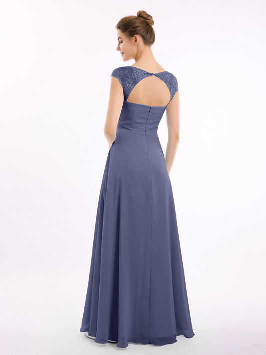 Babaroni MarleyVestidos de dama de honor de chiffon con mangas cap de encaje Tormenta