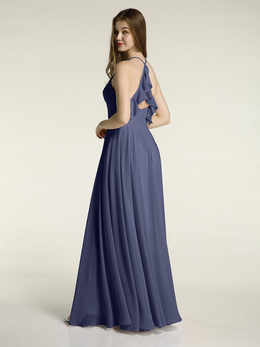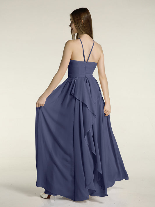 Babaroni AmyVestidos largos de dama de honor de chiffon con tirantes de cuello halter Tormenta