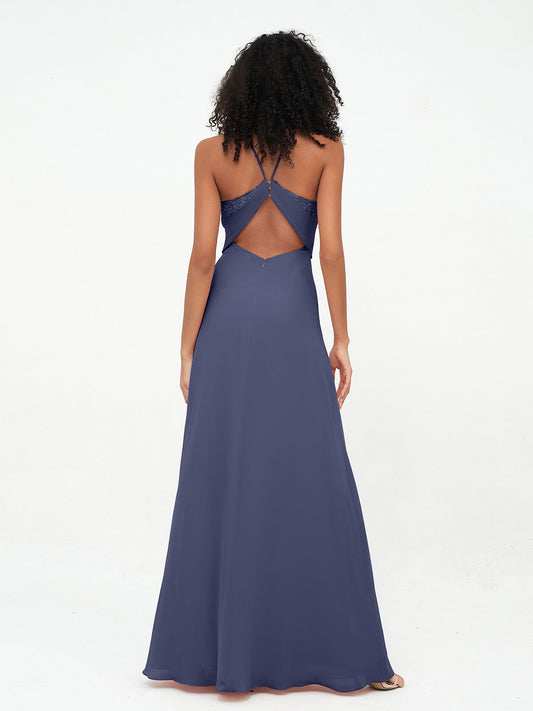 Babaroni FrancesVestidos de halter con top de encaje y espalda descubierta de gasa Tormenta