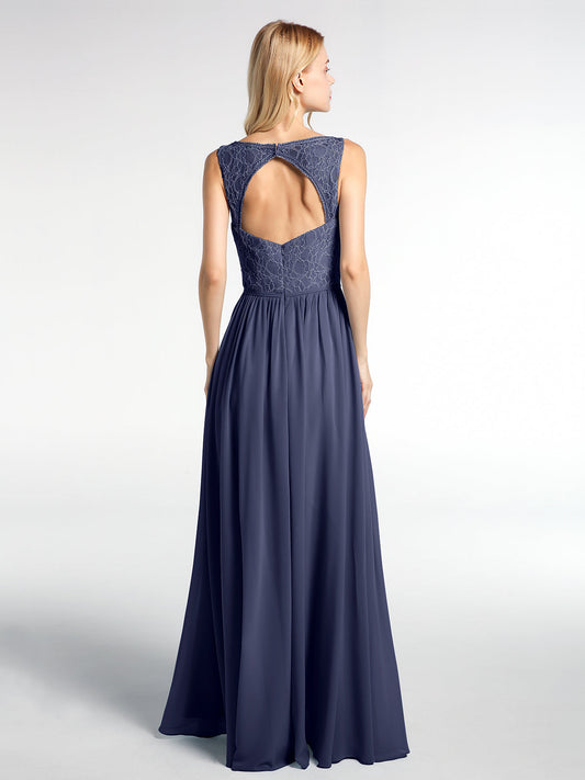 Babaroni WallisVestido maxi de encaje y chiffon con cuello ilusión envolvente Tormenta