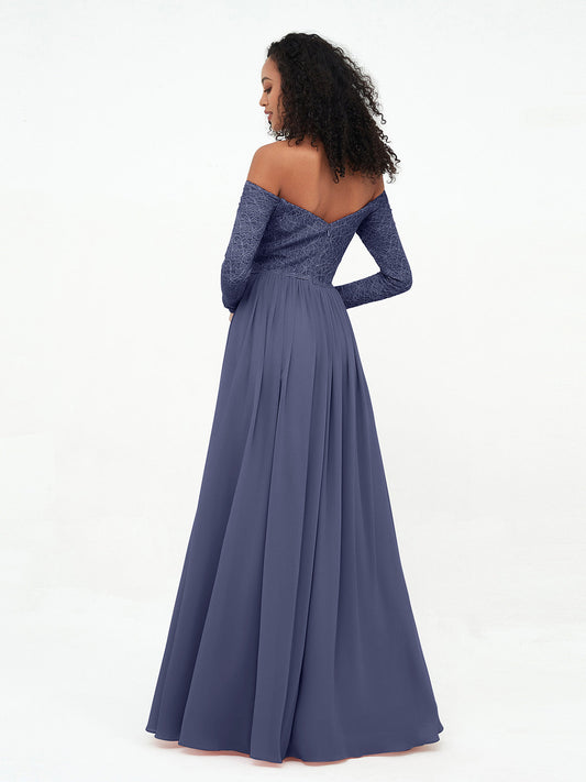 Babaroni JoannaVestidos largos de encaje con mangas largas y hombros descubiertos Tormenta