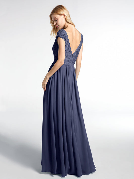Babaroni SherryVestido maxi de encaje y chiffon con mangas cortas Tormenta