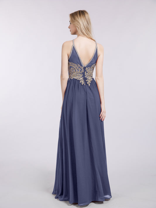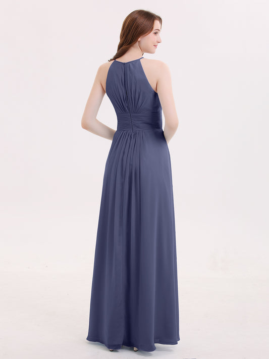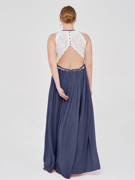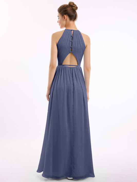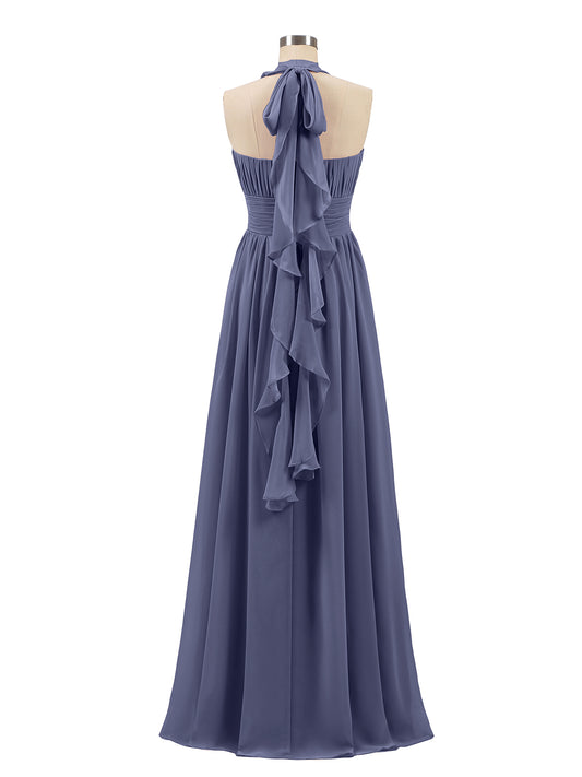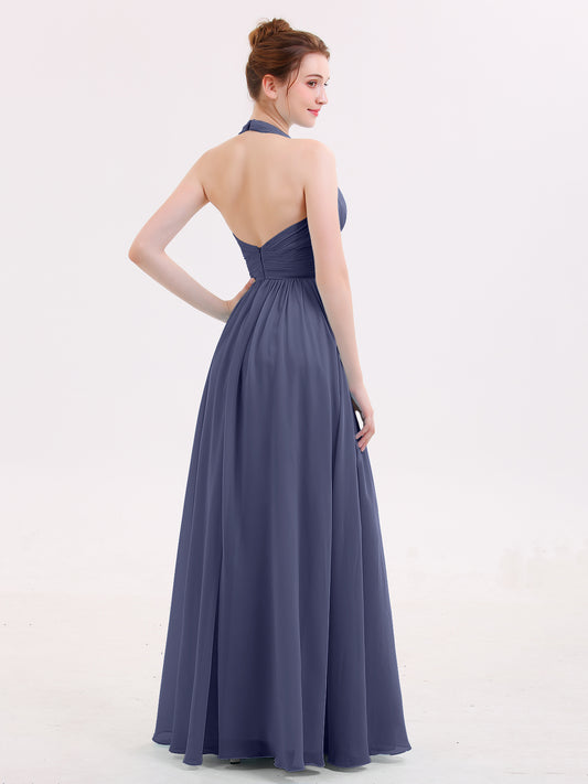 Babaroni CynthiaVestidos largos de chiffon estilo halter con espalda descubierta Tormenta