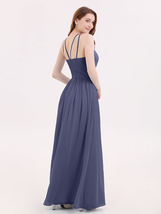 Babaroni FannyFanny Cabestro Largo Gasa Vestido De Dama De Honor Tormenta