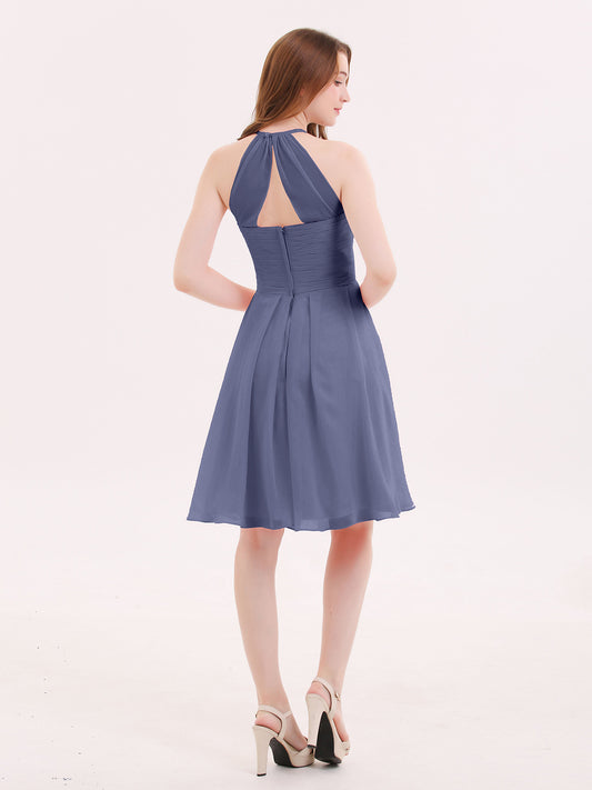 Babaroni NatividadNatividad Cabestro Escote En V Gasa Corto Vestidos De Dama De Honor Tormenta