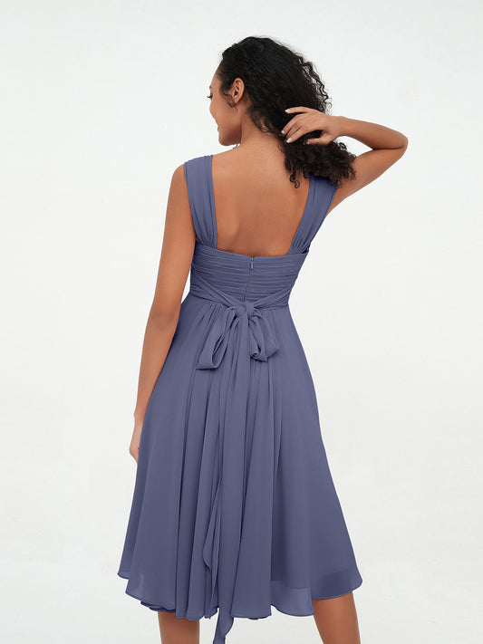 Babaroni EthelEthel Cruzado Delante Imperial Cintura Corto Vestido De Dama De Honor Tormenta