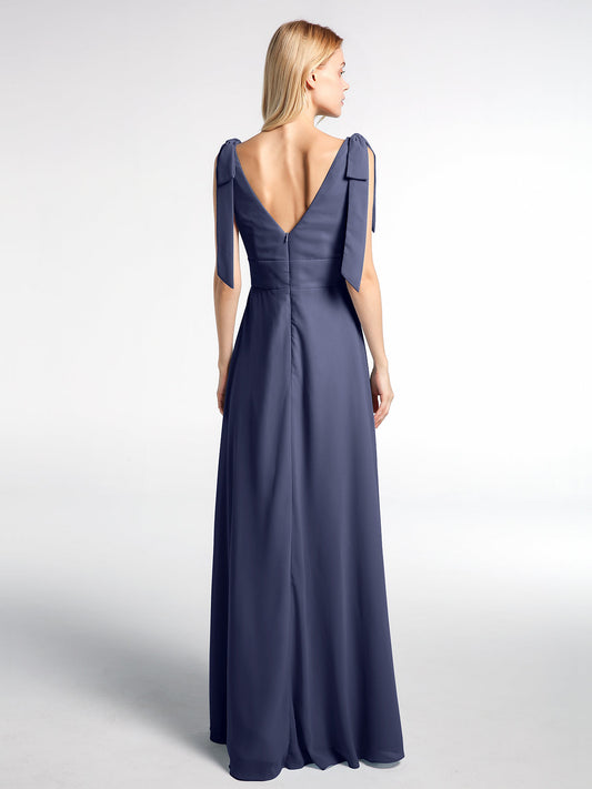 Babaroni VitaVestido de dama de honor de chiffon con escote en V y espalda descubierta Tormenta