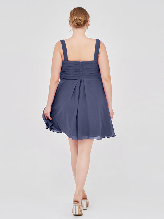 Babaroni PenelopePenelope Escote En V Gasa Corto Vestido De Dama De Honor Tormenta